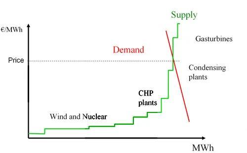 德州的電力市場是一個相當?shù)湫偷摹癊nergy only”的電力市場,也就是說,德州沒有電力容量市場,即沒有除了買電賣電的能量市場以外的機制去保證電廠建的足夠多。在電力市場設(shè)計的問題上,“Energy-only” vs “Capacity market”一直是一個爭議問題。根據(jù)電力市場供需曲線的關(guān)系(如下圖),電力批發(fā)價格在需求高峰飆高。保證電力機組容量的充足性、建設(shè)足夠多的電廠一直是個復雜的問題。電廠建設(shè)跟不上需求增長,電力機組容量過低,就很容易發(fā)生批發(fā)市場價格極高的問題,帶來市場不確定的風險。在極端情況下,就會成為人道主義災難。