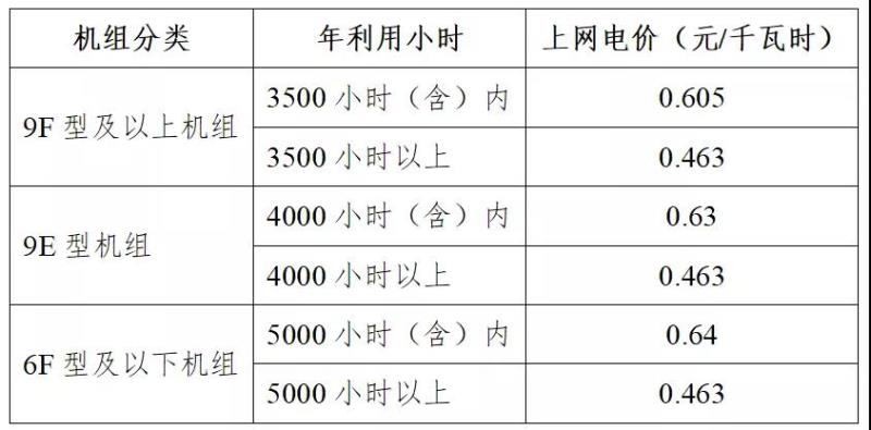 表1 廣東各類天然氣發(fā)電機(jī)組上網(wǎng)電價(jià)