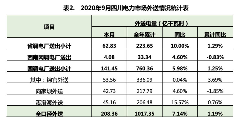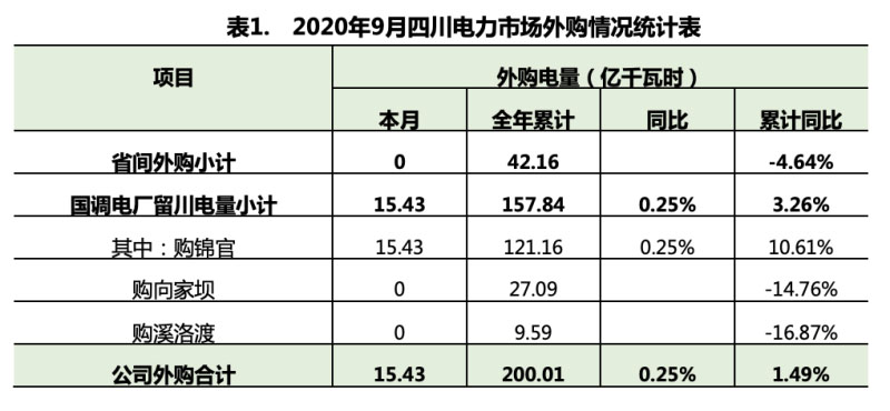 外購電情況:據(jù)快報,9月無省間外購,國調(diào)電廠留川電量15.43億千瓦時,同比增長0.25%。1~9月累計省間外購及留川電量200.01億千瓦時,同比增長1.49%,其中國調(diào)電廠留川電量157.84億千瓦時,同比增長3.26%。