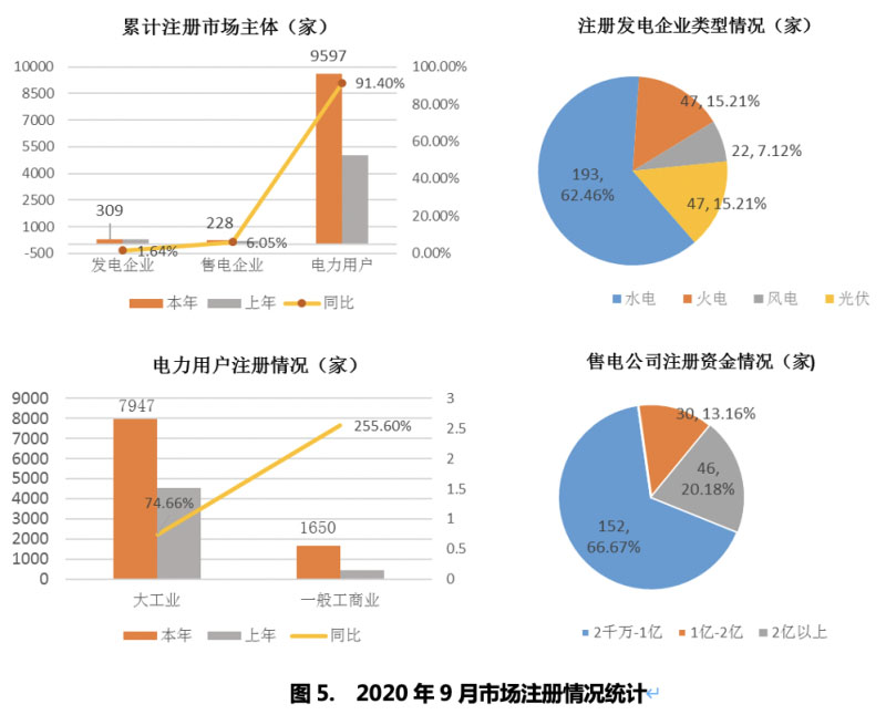 9月,四川電力交易平臺新增準(zhǔn)入市場主體128家,均為電力用戶。截至2020年9月末,四川電力交易平臺注冊市場主體共計10134家,其中:發(fā)電企業(yè)309家、售電公司228家、電力用戶9597家。