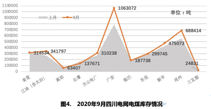 9月,四川電網(wǎng)主要火電廠累計存煤390.65萬噸,環(huán)比增加16.37%。
