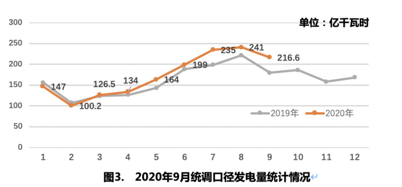 9月,發(fā)電量479.34億千瓦時(全口徑) 、437.47億千瓦時(調(diào)度口徑)、216.6億千瓦時(統(tǒng)調(diào)口徑)。