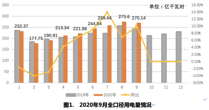 9月,全社會用電量270.14億千瓦時,同比增長10.03%,環(huán)比減少-1.98%。網(wǎng)供用電量182.17億千瓦時,同比增長16.62%。主網(wǎng)最大用電負(fù)荷3758.24萬千瓦,最小用電負(fù)荷2173.1萬千瓦。