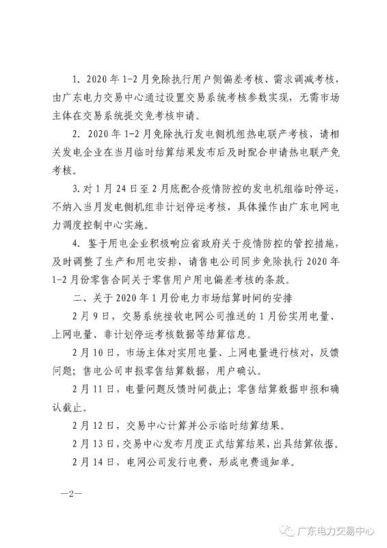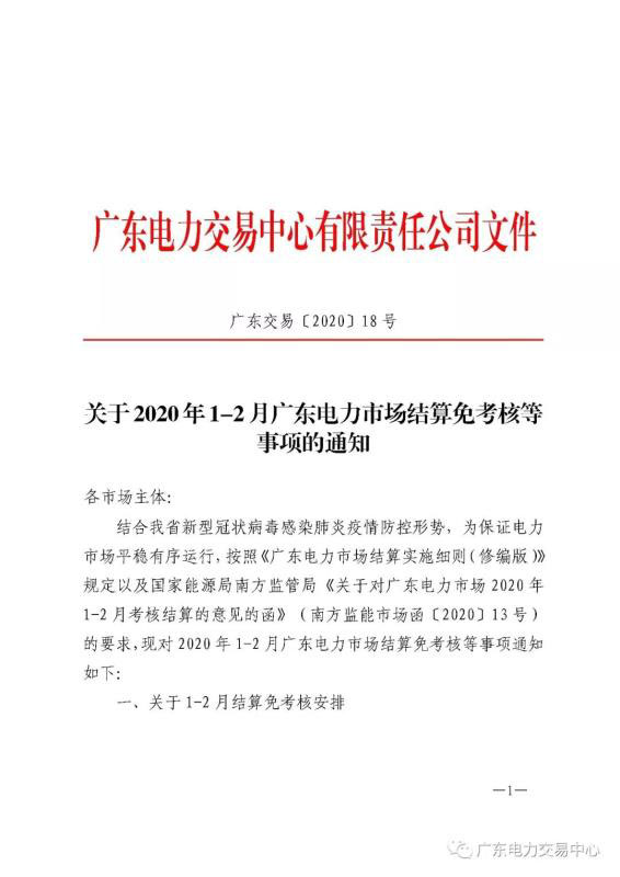 結(jié)合我省新型冠狀病毒感染肺炎疫情防控形勢,為保證電力市場平穩(wěn)有序運(yùn)行,現(xiàn)對2020年1-2月廣東電力市場結(jié)算免考核等事項通知如下: