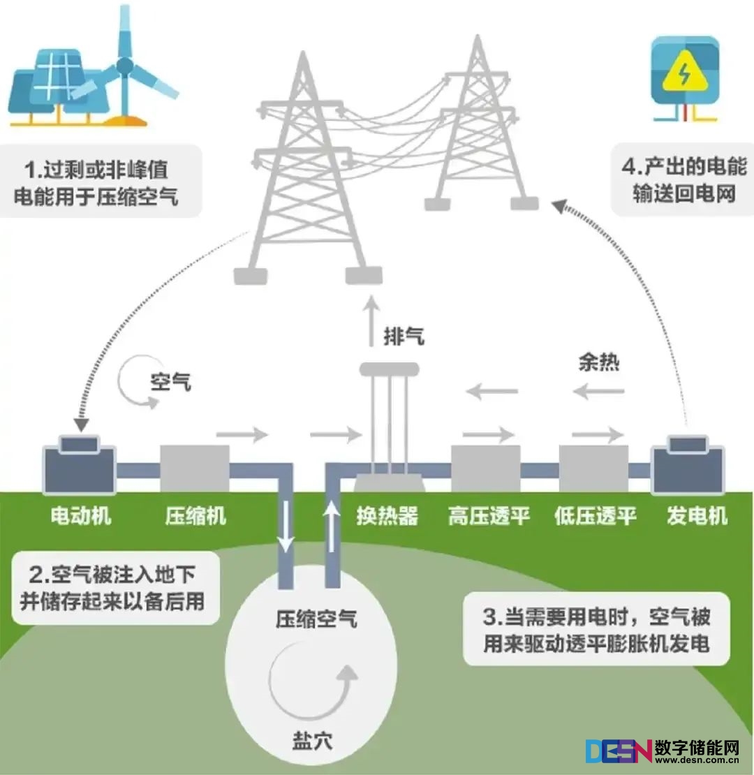 “空氣充電寶”即壓縮空氣儲(chǔ)能技術(shù),它在電力富裕時(shí)將空氣壓縮儲(chǔ)存在儲(chǔ)氣系統(tǒng)中,在需要電力時(shí)放出空氣推動(dòng)發(fā)電機(jī)發(fā)電,就像一個(gè)“超級(jí)充電寶”。
