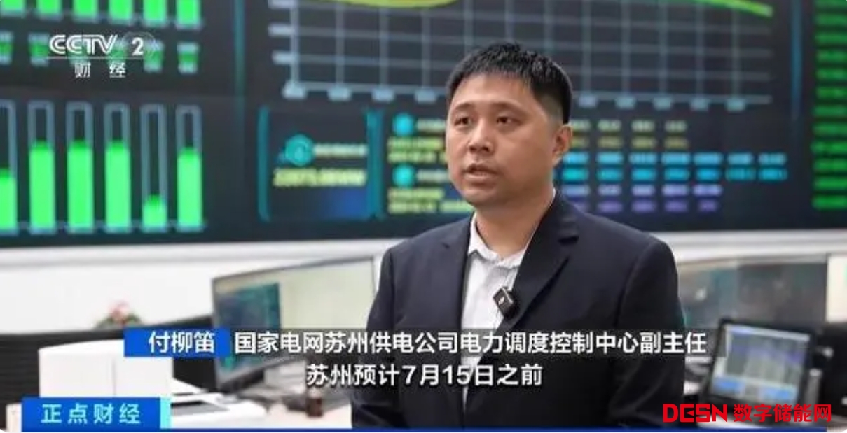 國家電網(wǎng)蘇州供電公司電力調(diào)度控制中心副主任 付柳笛:蘇州預計7月15日前,投運7個獨立新型儲能項目,合計功率42萬千瓦,容量達83萬千瓦時,總裝機容量相比去年提高了4倍。