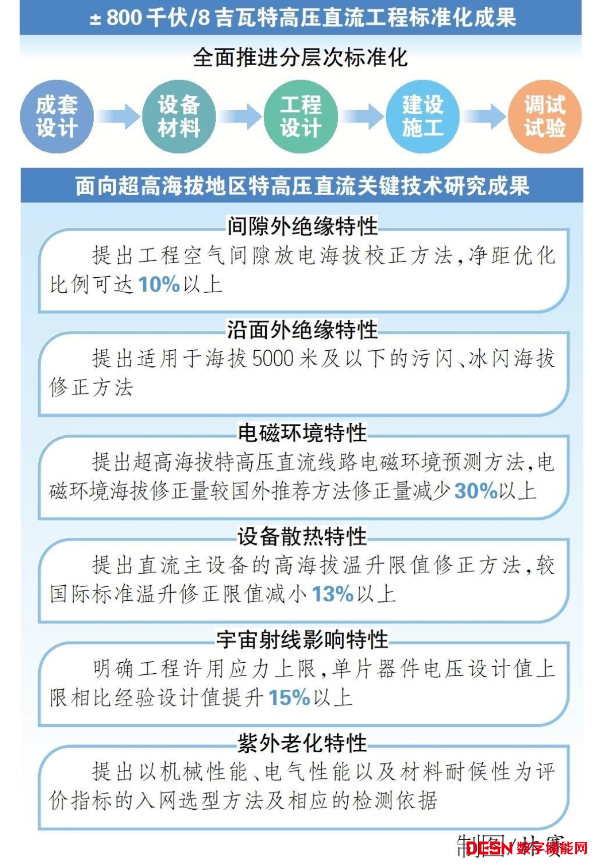 “±800千伏/8吉瓦特高壓直流標準化”技術(shù)成果全面總結(jié)16回特高壓直流工程建設(shè)經(jīng)驗,形成了一套涵蓋成套設(shè)計、設(shè)備材料、工程設(shè)計、建設(shè)施工、調(diào)試試驗建設(shè)全流程的標準化技術(shù)方案,可有效應(yīng)對工程面臨的資源配置、技術(shù)創(chuàng)新和安全質(zhì)量等方面的挑戰(zhàn)。