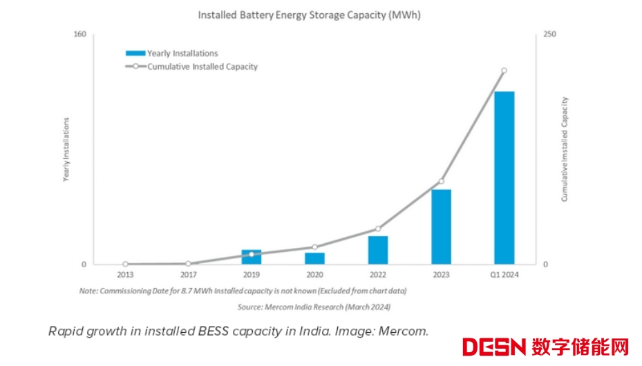 印度部署的電池儲能系統(tǒng)裝機容量快速增長