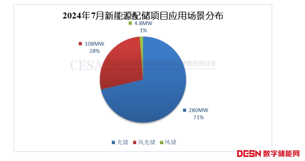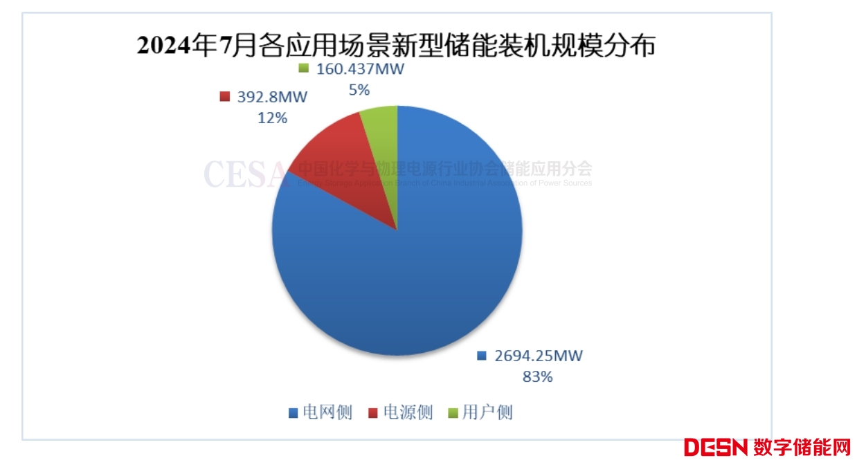 圖2-1 2024年7月各應(yīng)用場(chǎng)景新型儲(chǔ)能裝機(jī)規(guī)模分布圖