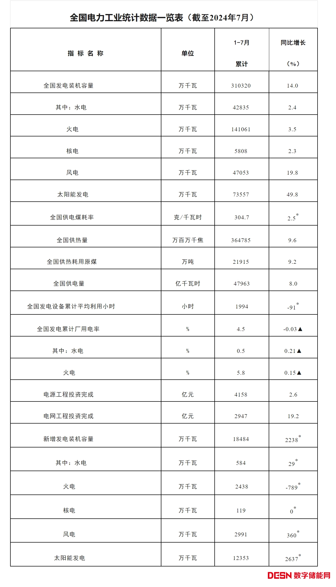 中國儲能網(wǎng)訊:8月23日,國家能源局發(fā)布1~7月份全國電力工業(yè)統(tǒng)計數(shù)據(jù)。