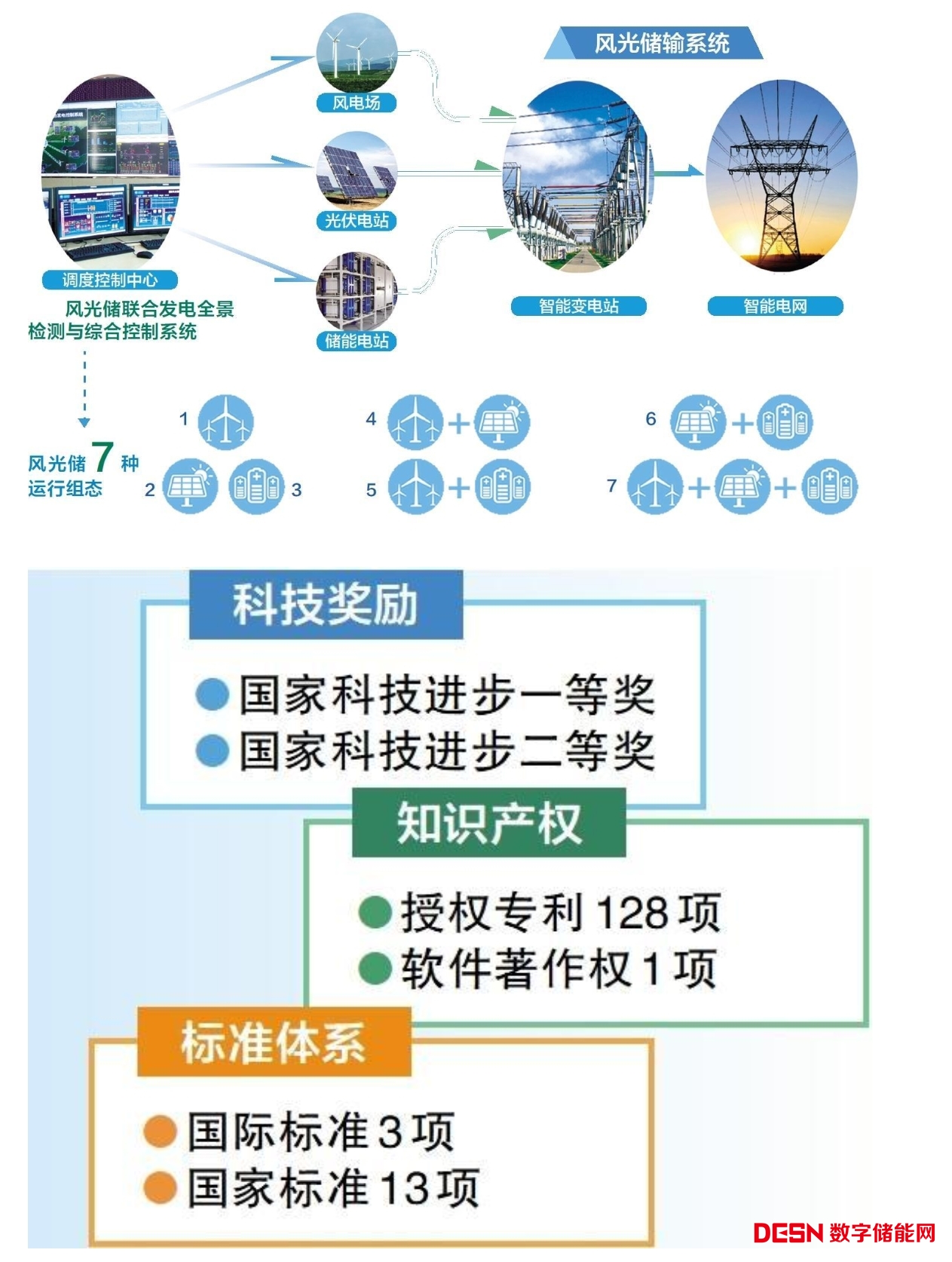 國家風光儲輸示范工程提出了風光儲七種運行組態(tài)的聯(lián)合發(fā)電,即風力發(fā)電、儲能發(fā)電、太陽能光伏發(fā)電、“風+光”發(fā)電、“光+儲”發(fā)電、“風+儲”發(fā)電、“風+光+儲”發(fā)電,通過實時調(diào)節(jié)風、光、儲各單元的運行狀態(tài),使聯(lián)合發(fā)電系統(tǒng)能夠準確、快速地參與電網(wǎng)調(diào)度任務,為解決新能源大規(guī)模集中開發(fā)、集成應用的世界性難題提供了“中國方案”。