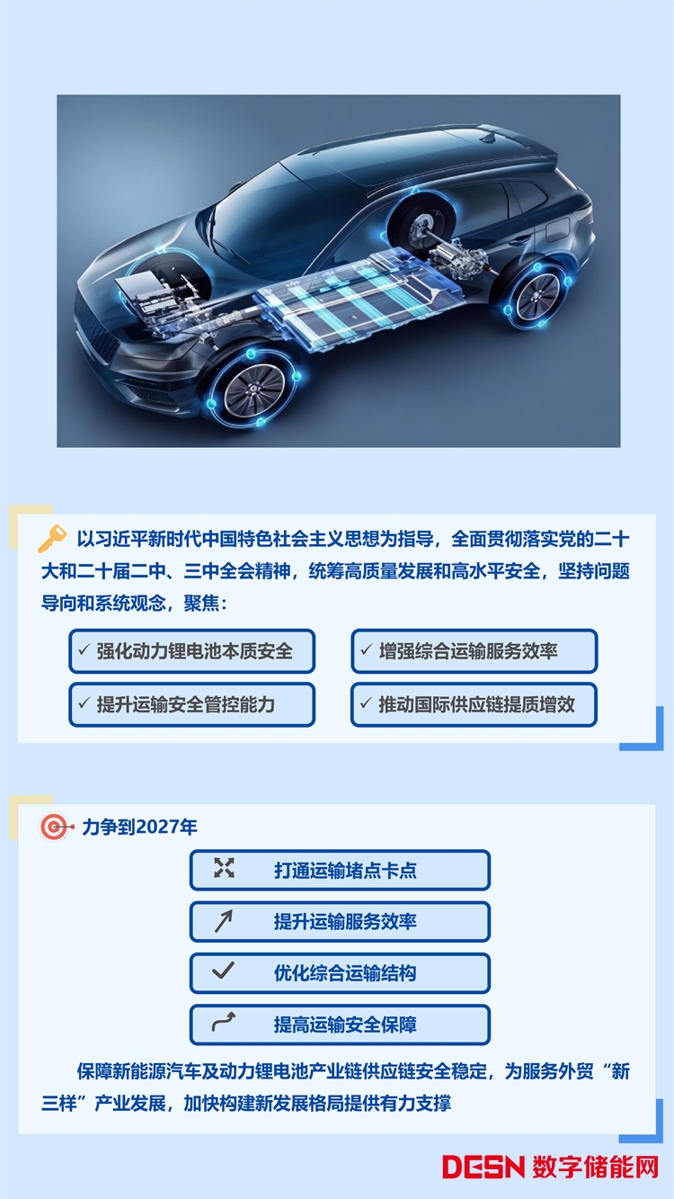 中國儲(chǔ)能網(wǎng)訊:動(dòng)力鋰電池是支撐新能源汽車產(chǎn)業(yè)高質(zhì)量發(fā)展的關(guān)鍵。為深入貫徹落實(shí)黨中央、國務(wù)院決策部署,加快提升新能源汽車動(dòng)力鋰電池運(yùn)輸服務(wù)和安全保障能力,促進(jìn)新能源汽車動(dòng)力鋰電池安全、便捷、高效運(yùn)輸,切實(shí)增強(qiáng)新能源汽車和動(dòng)力鋰電池產(chǎn)業(yè)競(jìng)爭(zhēng)力,更好服務(wù)構(gòu)建現(xiàn)代化產(chǎn)業(yè)體系,助力發(fā)展新質(zhì)生產(chǎn)力,9月14日,交通運(yùn)輸部會(huì)同工業(yè)和信息化部、公安部、商務(wù)部、應(yīng)急管理部、市場(chǎng)監(jiān)管總局、國家鐵路局、中國民用航空局、國家消防救援局、中國國家鐵路集團(tuán)有限公司等9個(gè)部門和單位聯(lián)合印發(fā)《關(guān)于加快提升新能源汽車動(dòng)力鋰電池運(yùn)輸服務(wù)和安全保障能力的若干措施》。