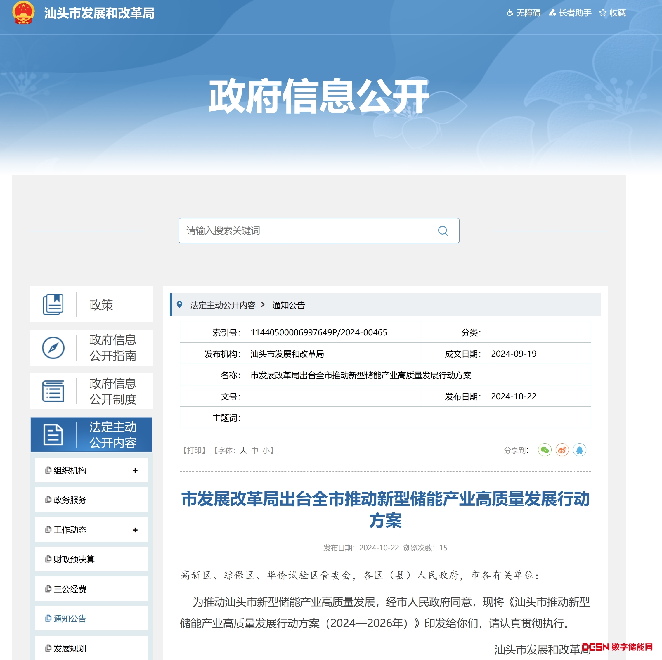 作者:數(shù)字儲(chǔ)能網(wǎng)新聞中心 來(lái)源:汕頭市發(fā)展和改革局 發(fā)布時(shí)間:2024-10-23 瀏覽:次