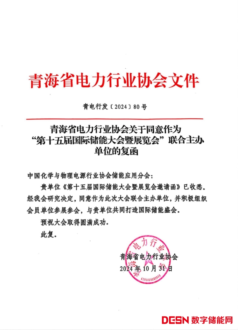 中國儲能網(wǎng)訊:近日,青海省電力行業(yè)協(xié)會復函中國化學與物理電源行業(yè)協(xié)會儲能應用分會,同意作為第十五屆中國國際儲能大會暨展覽會(CIES2025)聯(lián)合主辦單位,并積極組織會員單位參展參會,與中國化學與物理電源行業(yè)協(xié)會儲能應用分會共同打造這場國際儲能盛會。