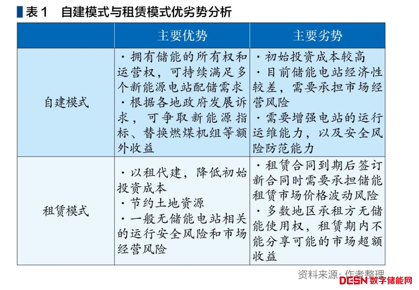 自建儲能是指企業(yè)利用自有資金或者其他融資方式獨立投資建設(shè)儲能電站,基于運維團隊對電站進行日常管理,儲能電站獲取的全部收益歸自身所有。企業(yè)擁有儲能電站的所有權(quán)和運營權(quán),可持續(xù)滿足所屬多個新能源電站的配儲需求,但初始投資成本高,需要承擔儲能電站運行安全風險和市場經(jīng)營風險。