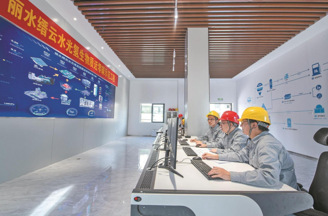 實驗室成員在麗水縉云水光氫生物質(zhì)近零碳示范工程現(xiàn)場調(diào)試系統(tǒng)。 浙江電科院供圖