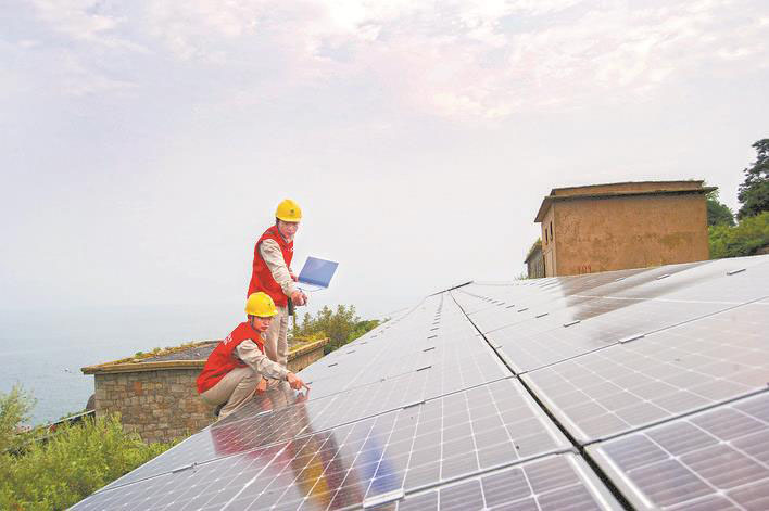 國網(wǎng)江蘇電力組織國內(nèi)氣象、地質(zhì)、水文等方面的專家,梳理分析開山島區(qū)域的歷史氣象數(shù)據(jù),根據(jù)數(shù)據(jù)結(jié)果重新設(shè)計光伏板的安裝方式,在保證足夠發(fā)電效率的基礎(chǔ)上,將光伏板安裝角度設(shè)置為2.2度。光伏板安裝完成后,從遠(yuǎn)處看與島上建筑的屋頂渾然一體,絲毫沒有影響建筑和開山島整體外觀。