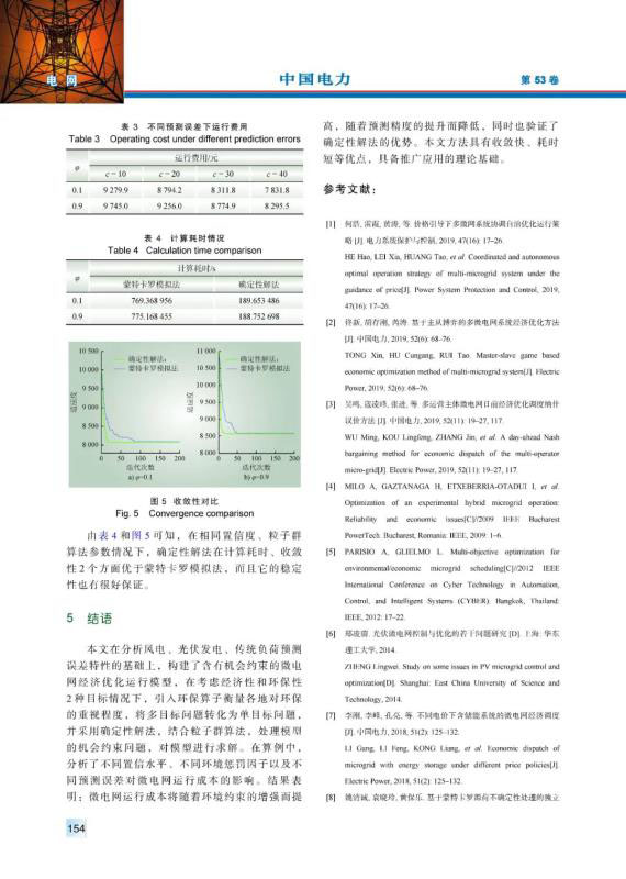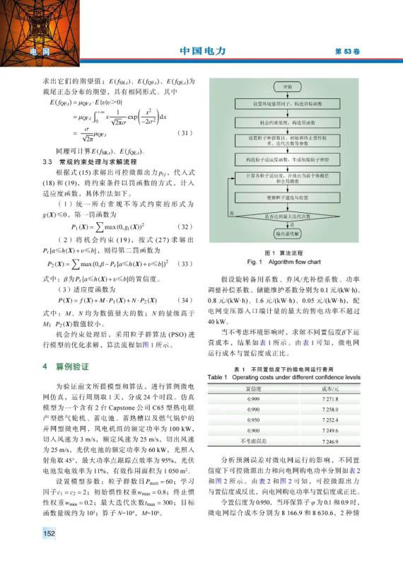 結(jié)論:本文在分析風(fēng)電、光伏發(fā)電、傳統(tǒng)負(fù)荷預(yù)測(cè)誤差特性的基礎(chǔ)上,構(gòu)建了含有機(jī)會(huì)約束的微電網(wǎng)經(jīng)濟(jì)優(yōu)化運(yùn)行模型,在考慮經(jīng)濟(jì)性和環(huán)保性2種目標(biāo)情況下,引入環(huán)保算子衡量各地對(duì)環(huán)保的重視程度,將多目標(biāo)問題轉(zhuǎn)化為單目標(biāo)問題,并采用確定性解法,結(jié)合粒子群算法,處理模型的機(jī)會(huì)約束問題,對(duì)模型進(jìn)行求解。在算例中,分析了不同置信水平、不同環(huán)境懲罰因子以及不同預(yù)測(cè)誤差對(duì)微電網(wǎng)運(yùn)行成本的影響。結(jié)果表明:微電網(wǎng)運(yùn)行成本將隨著環(huán)境約束的增強(qiáng)而提高,隨著預(yù)測(cè)精度的提升而降低,同時(shí)也驗(yàn)證了確定性解法的優(yōu)勢(shì)。本文方法具有收斂快、耗時(shí)短等優(yōu)點(diǎn),具備推廣應(yīng)用的理論基礎(chǔ)。