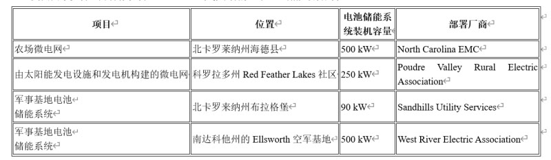 美國國家鄉(xiāng)村電力合作協(xié)會(NRECA)計(jì)劃部署的4個電池儲能項(xiàng)目列表