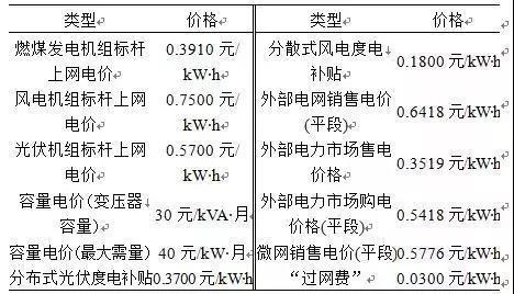未參與電力市場(chǎng)前,微網(wǎng)內(nèi)部分布式能源上網(wǎng)電量以當(dāng)?shù)厝济喊l(fā)電機(jī)組標(biāo)桿上網(wǎng)電價(jià)結(jié)算,外購電量以目錄銷售電價(jià)(考慮峰谷分時(shí))結(jié)算。