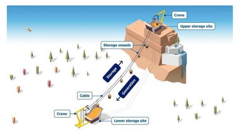 Hunt和他的合作者設(shè)計了一種新的系統(tǒng)來解決鋰離子電池長期用于儲能:山地重力儲能,簡稱MGES。與水力發(fā)電類似,MGES包括在海拔高度儲存物質(zhì)以產(chǎn)生重力能。當(dāng)儲存的物質(zhì)下落并轉(zhuǎn)動渦輪機(jī)發(fā)電時,能量被回收。該團(tuán)隊在11月6日發(fā)表在《能源》雜志上的一篇論文中描述了它的系統(tǒng)。Hunt解釋說:“我們建議建造一個大的沙礫水庫,而不是建一座大壩?!盡GES的關(guān)鍵在于找到兩個海拔高度相差1000米的山頂?shù)攸c(diǎn)是理想的?!案卟钤酱螅夹g(shù)就越便宜,”他說。這些地點(diǎn)看起來很相似,每一個地點(diǎn)都有一個類似礦山的砂或礫石儲存站和一個正下方的加油站組成。閥門將材料釋放到等待的容器中,然后通過起重機(jī)和電機(jī)電纜將其運(yùn)送到上層現(xiàn)場。在那里,沙子或礫石被儲存了幾周,幾個月,甚至幾年,直到可以使用為止。當(dāng)物質(zhì)被移回山下時,儲存的引力能被釋放并轉(zhuǎn)化為電能。該系統(tǒng)非常靈活,Hunt說,因?yàn)槟憧梢院苋菀椎馗淖冸娎|的速度,增加負(fù)載,或改變船只的數(shù)量,以滿足不同的能源需求。Hunt說,與抽水蓄能水電站和大壩等傳統(tǒng)的長期蓄水方法相比,MGES的效果更好,因?yàn)樗鼘Νh(huán)境的影響很小。而且,成堆的沙子很便宜,比水還便宜。沙子不會蒸發(fā),所以你可以繼續(xù)無限期地使用它。Hunt估計,通過這個系統(tǒng)儲存能量的年成本將在每兆瓦時50至100美元之間變化。
