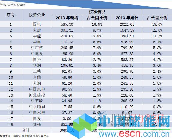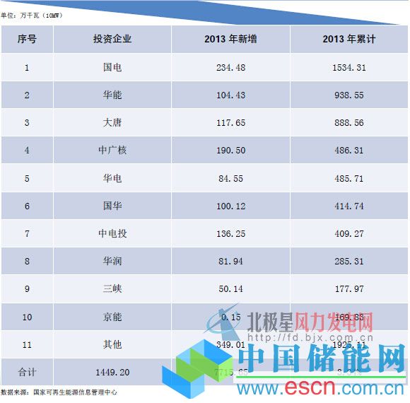 表2:2013 年風電投資企業(yè)并網情況統計表