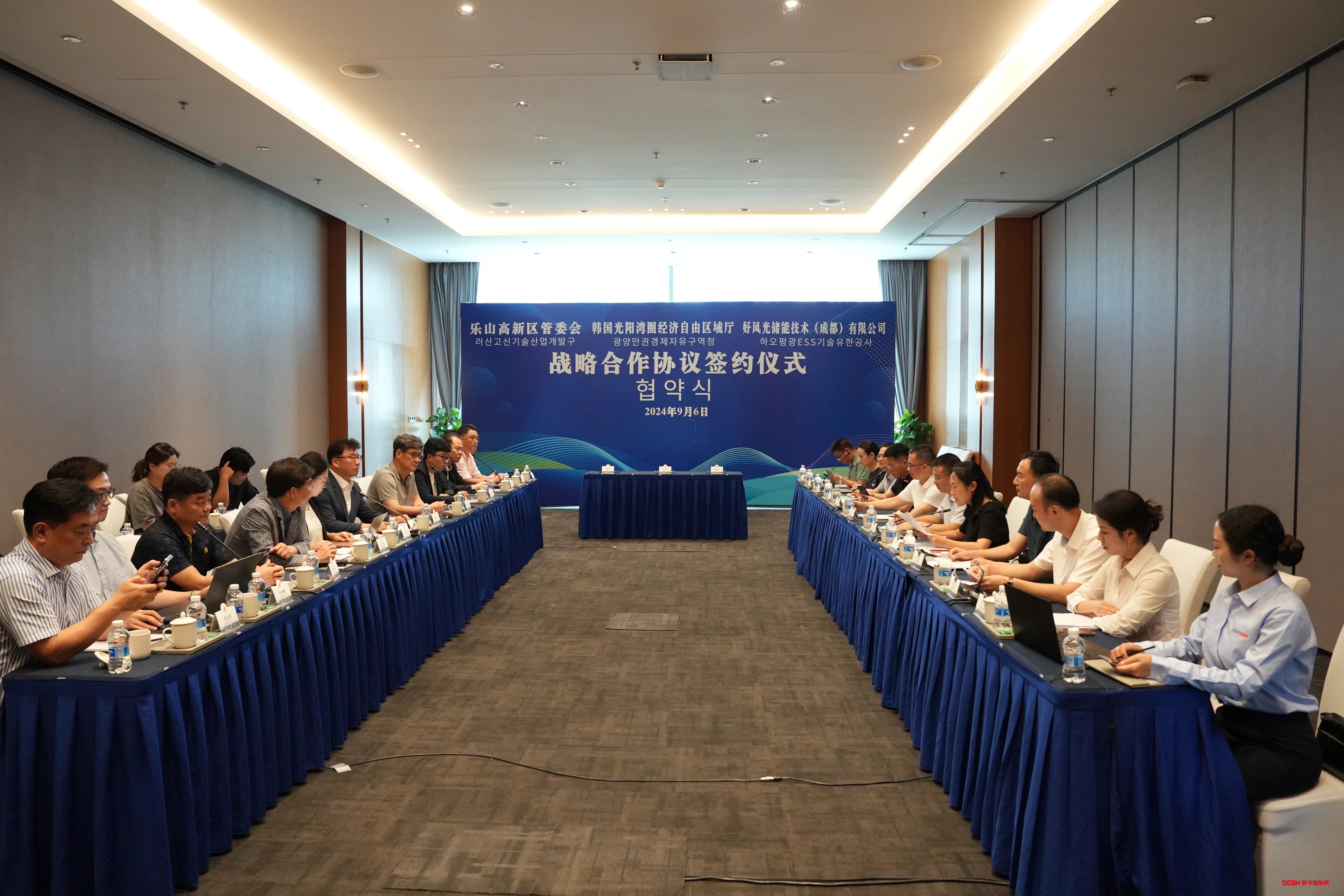 簽約儀式上,樂山高新區(qū)管委會總工程師劉慶杰和韓國光陽灣圈經(jīng)濟自由區(qū)域廳代廳長宣良圭分別致辭,祝賀好風光儲能取得歷史性突破,并期待在技術、資本、標準和國際渠道市場開發(fā)方面開展深入合作,為推動全球能源轉型和應對氣候變化做出積極貢獻。