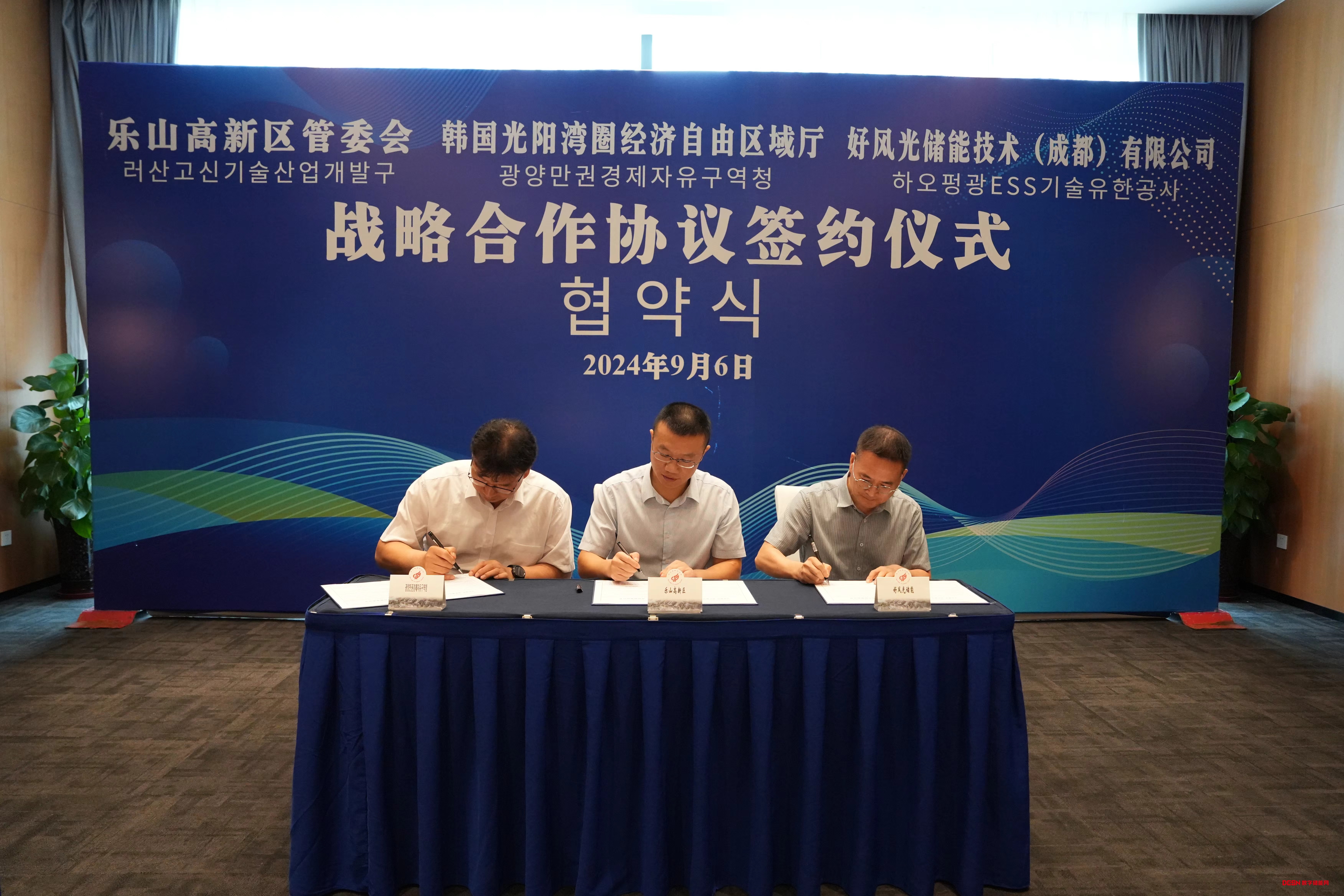中國儲能網(wǎng)訊:9月6日上午,好風光儲能技術(成都)有限公司、韓國光陽灣圈經(jīng)濟自由區(qū)域廳、樂山高新技術產(chǎn)業(yè)開發(fā)區(qū)管理委員會在樂山高新區(qū)共同簽署了《戰(zhàn)略合作協(xié)議》,一起助力顛覆性儲能技術——半開放鋰漿儲能專用電池的規(guī)模化生產(chǎn)和國際推廣,助力中韓兩國儲能產(chǎn)業(yè)高質量發(fā)展。