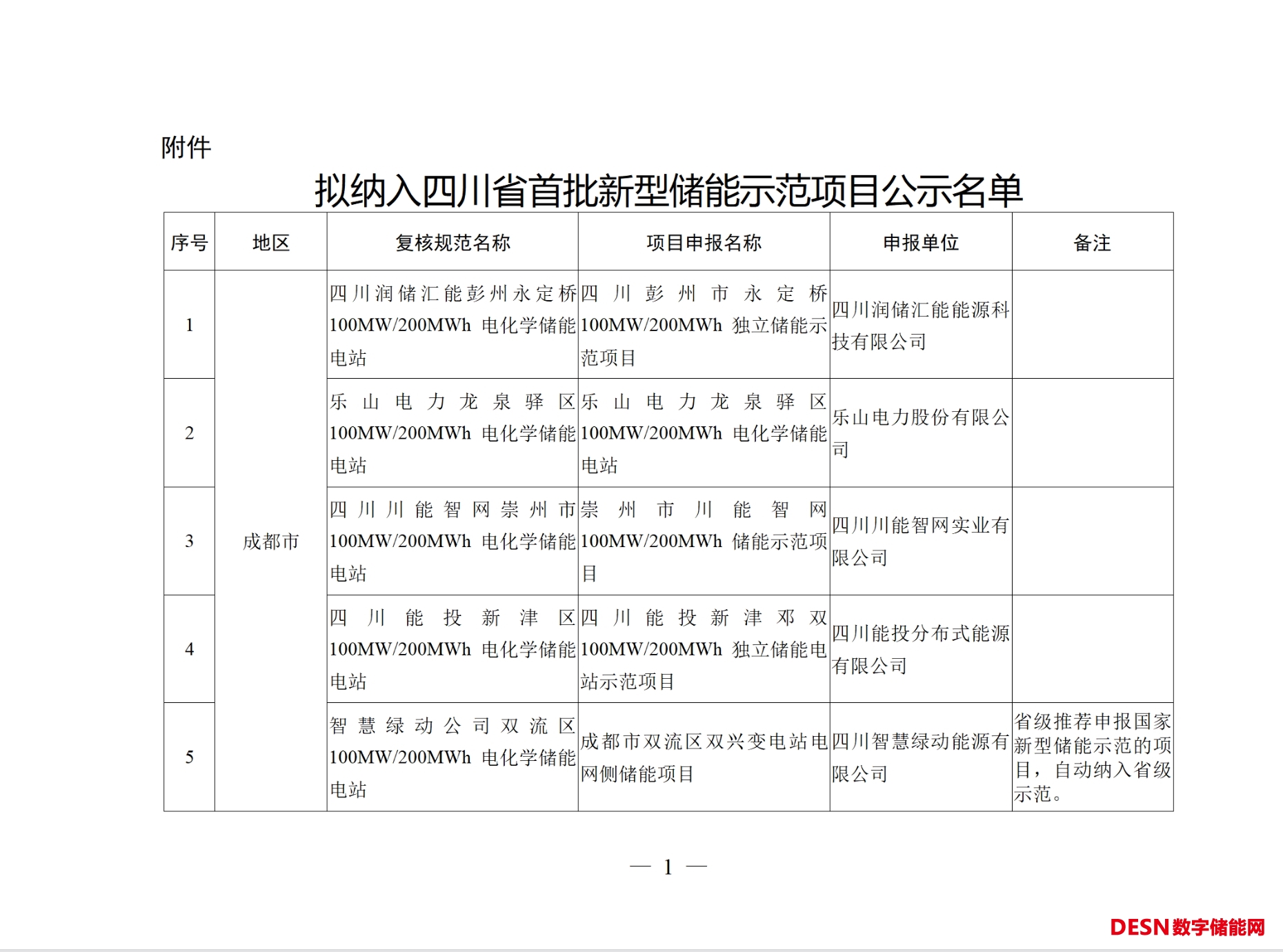 附件:擬納入四川省首批新型儲能示范項目公示名單