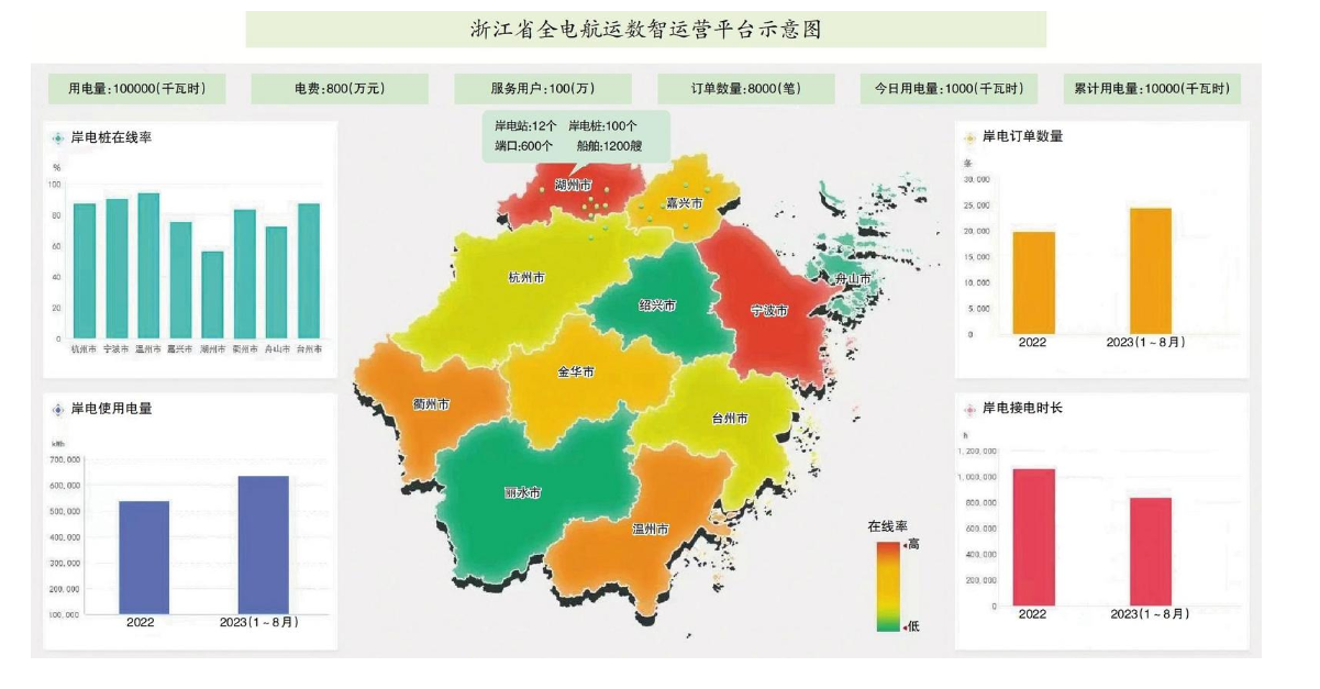 “智慧港航貫通了交通側(cè)和電力側(cè)數(shù)據(jù),能夠判斷船舶靠港后是否使用岸電,為政府部門制定相關(guān)政策提供數(shù)據(jù)支撐。”蔣鐘介紹,“去年,湖州岸電用電量達(dá)115萬(wàn)千瓦時(shí),位列浙江省內(nèi)河港口首位。”