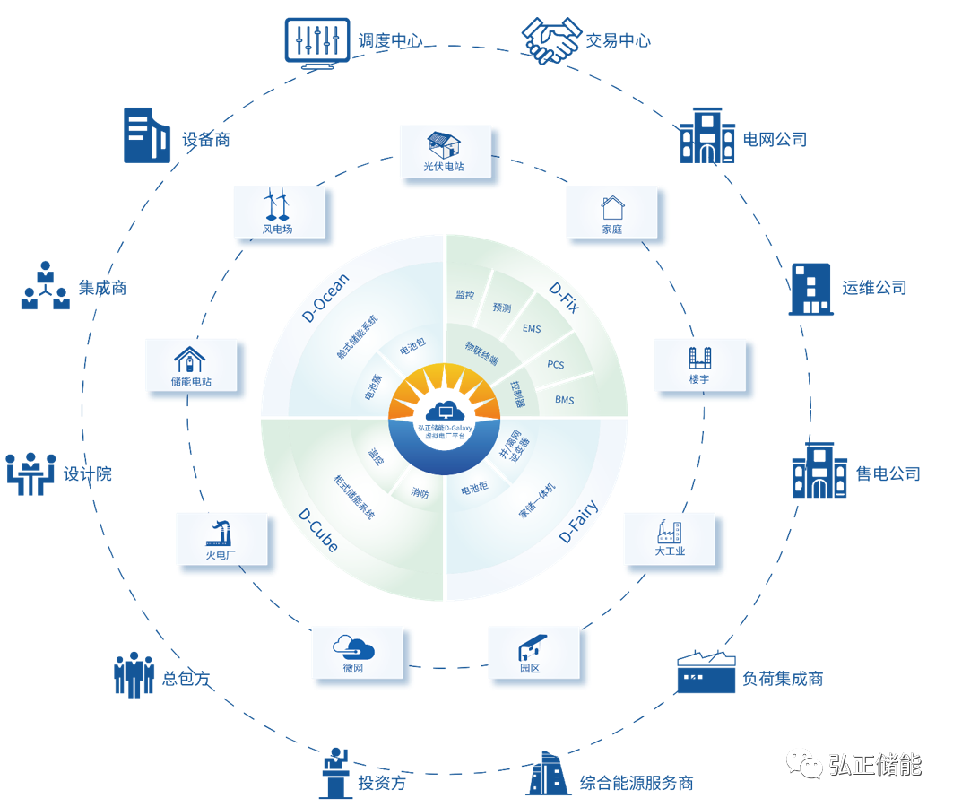 弘正儲能將數(shù)字化儲能技術(shù)作為打造產(chǎn)品差異化和核心競爭力的重點方向,融合數(shù)字技術(shù)、電網(wǎng)調(diào)控技術(shù)、電力電子技術(shù)、儲能本體技術(shù),構(gòu)建儲能系統(tǒng)云邊端新架構(gòu),打造以D-Galaxy智慧云腦為智能化核心、D-Fix能量管理系統(tǒng)為數(shù)字化節(jié)點、D-Ocean(儲能艙)、D-Cube(儲能柜)、D-Fairy(戶用家儲一體機)為數(shù)字化載體的智能高效安全儲能系統(tǒng)解決方案,實現(xiàn)全景接入、智能聚合、智慧調(diào)控、安全運行、高效運維,完美覆蓋源網(wǎng)側(cè)、工商業(yè)、戶用等業(yè)務(wù)場景需求,形成安全可靠智能高效的儲能系統(tǒng)解決方案。