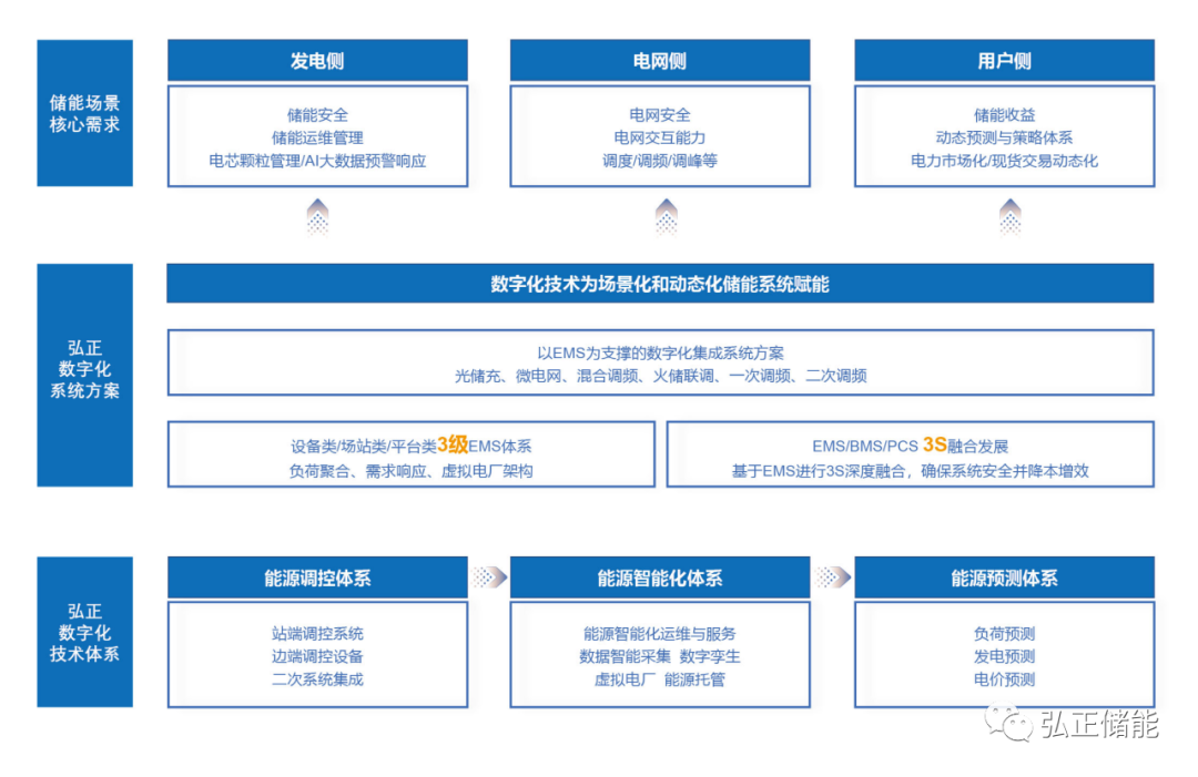 弘正儲能持續(xù)探索數(shù)字技術(shù)與儲能產(chǎn)業(yè)的深度融合,聚焦儲能產(chǎn)業(yè)痛點,通過引入物聯(lián)網(wǎng)、云計算、大數(shù)據(jù)、人工智能等數(shù)字技術(shù),實現(xiàn)能量流與信息流的雙向貫通,打造“產(chǎn)品-控制-平臺-方案”全鏈路高度融合的數(shù)字化儲能體系,構(gòu)建安全、經(jīng)濟、高效、智能的儲能產(chǎn)業(yè)新生態(tài),助力儲能在源網(wǎng)荷各場景創(chuàng)造更高的價值。