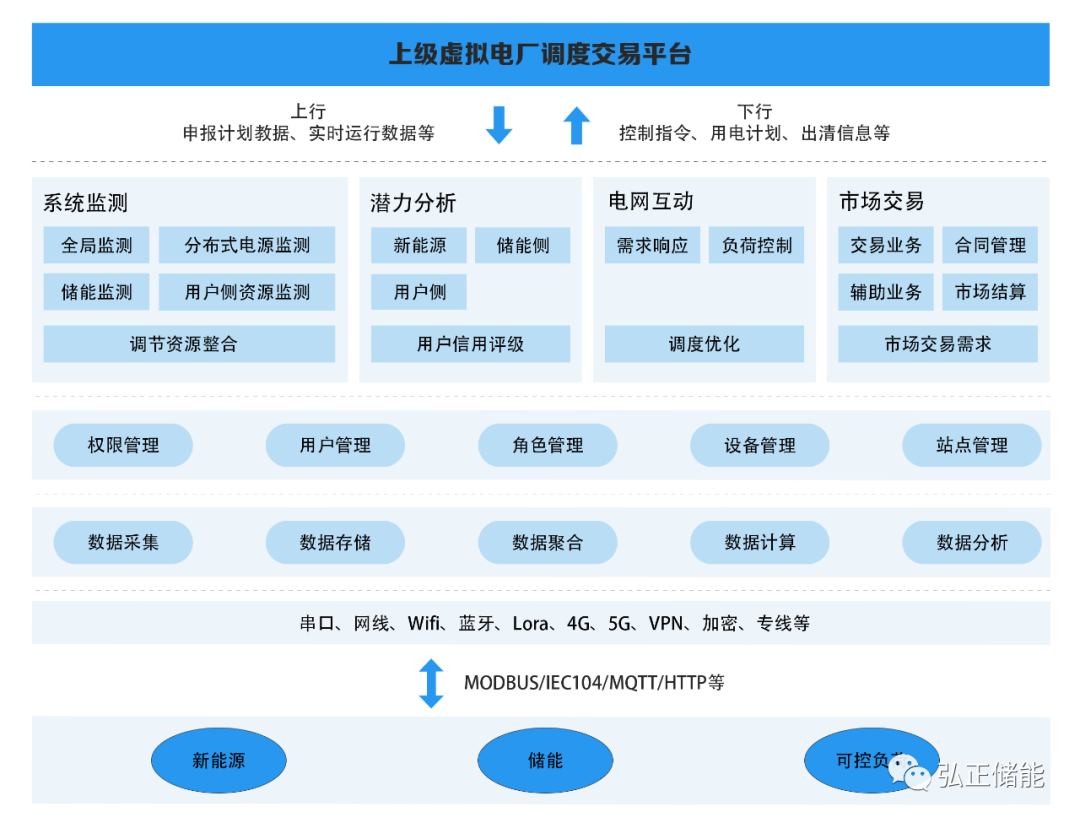 弘正儲能虛擬電廠通過先進的控制、計量、通信等技術(shù)聚合分布式電源、儲能系統(tǒng)、可控負荷、電動汽車等多種可調(diào)節(jié)資源,依托靈活開放的軟件架構(gòu)實現(xiàn)多個分布式能源的優(yōu)化調(diào)度,并利用大數(shù)據(jù)的算法,持續(xù)提升分布式能源的運行效率和虛擬電廠對電網(wǎng)的支撐能力;在能量調(diào)度和能源交易方面,弘正儲能可為用戶提供去中心化的技術(shù)支持,實現(xiàn)自適應(yīng)、去中心化的能源調(diào)度,促進電力市場的競爭和合作,推動能源交易,實現(xiàn)能源互補、協(xié)同運營和多方共贏。