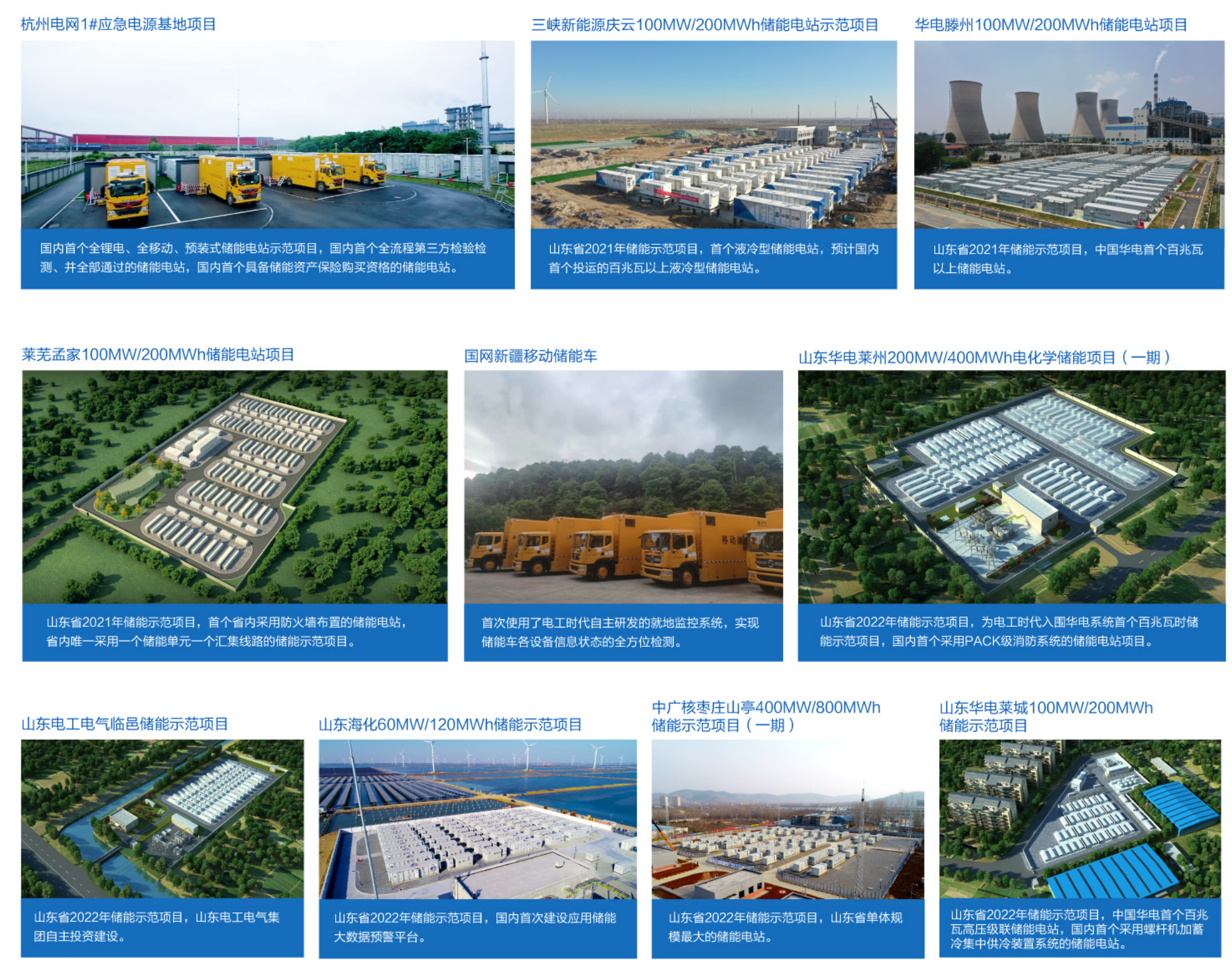 2018年以來,電工時代深耕智慧儲能領(lǐng)域,投身“碳達(dá)峰、碳中和”行動,為推進(jìn)我國構(gòu)建清潔低碳、安全高效能源體系貢獻(xiàn)力量,擁有13個100MWh及以上規(guī)模規(guī)模儲能電站,其中7個100MWh及以上規(guī)模儲能電站已投運。先后在山東、湖北、甘肅、浙江、廣東、重慶等地承接儲能重點示范項目。并創(chuàng)下國內(nèi)多項“首個”:成為國內(nèi)為數(shù)不多具有3個百兆瓦級以上儲能系統(tǒng)集成業(yè)績的廠家之一;國內(nèi)首個推出1500V高壓儲能系統(tǒng)并工程應(yīng)用;國內(nèi)首個投運的全鋰電、全移動、預(yù)裝式儲能電站;國內(nèi)首創(chuàng)移動儲能車;國內(nèi)最早通過中國電科院認(rèn)證;國內(nèi)首個 1500V液冷電池商集裝箱產(chǎn)品;國內(nèi)首個通過全流程第三方檢驗檢測、具有儲能資產(chǎn)保險購買資格的儲能電站;國內(nèi)首個百兆瓦級高壓級聯(lián)儲能電站,山東省首家、也是唯一一家儲能技術(shù)共享實驗室。