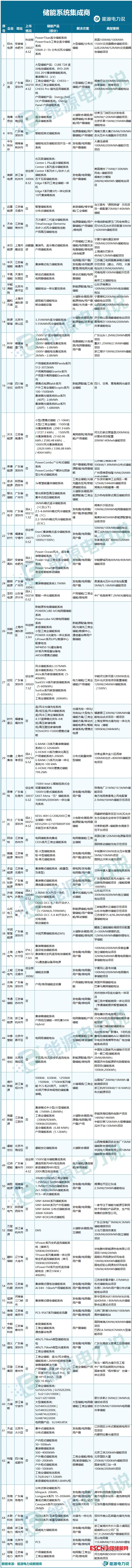 儲(chǔ)能系統(tǒng)集成商如下(部分):