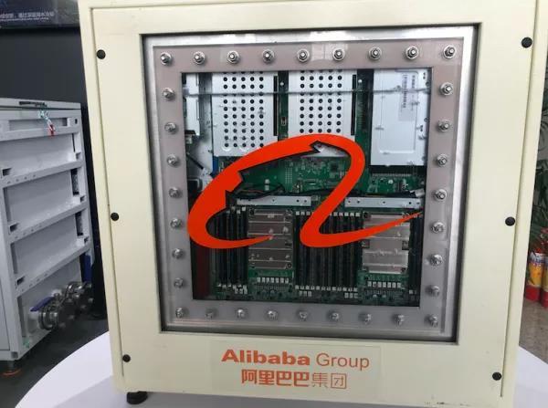 自2015年起,阿里巴巴對液冷技術(shù)和方案展開研究、探索,自主研發(fā)了浸沒式液冷服務(wù)器——服務(wù)器整體浸泡在絕緣、無腐蝕性的冷卻液中,可以把服務(wù)器中CPU、內(nèi)存條、芯片組、擴(kuò)展卡等電子器件在運(yùn)行時所產(chǎn)生的熱量均通過冷熱交換帶走。由于箱體密封,可保護(hù)IT設(shè)備免于外界環(huán)境的影響,極大提高設(shè)備可靠性。