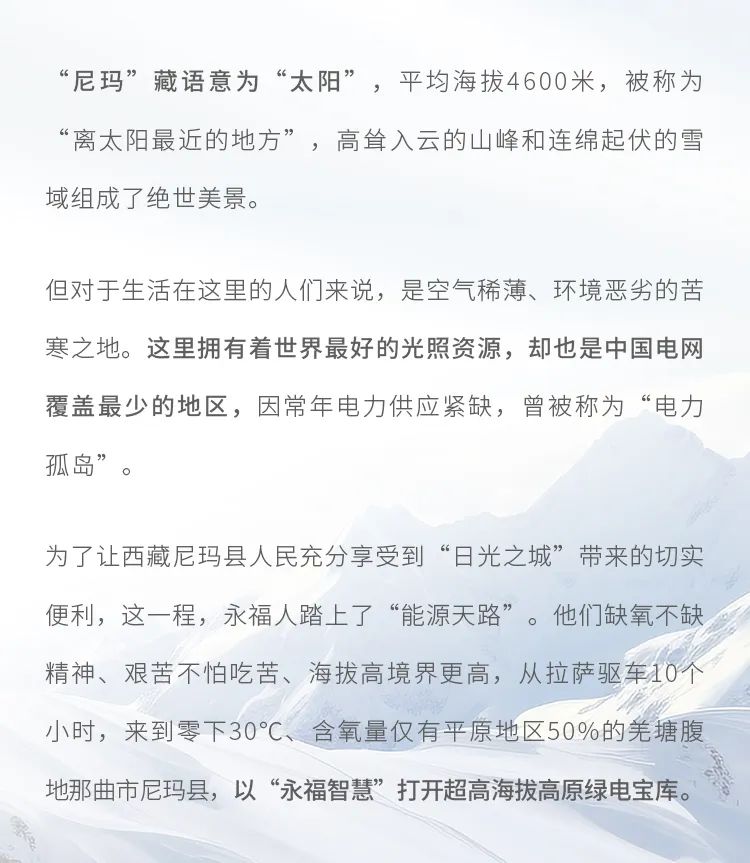 12月26日,在千山之巔、萬水之源的“世界屋脊”,由國投電力投資建設(shè),永福股份承建的國投尼瑪縣塘魯50MW光伏+儲能項目順利實現(xiàn)全容量并網(wǎng)發(fā)電,標(biāo)志著永福股份助力國投電力實現(xiàn)在西藏自治區(qū)清潔能源裝機“零”的突破。