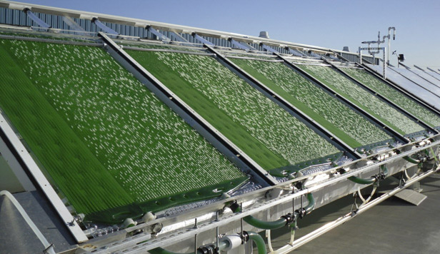 焦耳無限公司設計了一種裝置,稱為太陽能轉換器(SolarConverter),薄薄的透明面板中,循環(huán)流動著微咸水和氮礎生長介質,起泡是因為有二氧化碳。轉換器內,工程設計的微生物利用太陽能量,把水和氣體轉換成乙醇或石蠟烴(paraffinic hydrocarbons),這是柴油的主要成分。