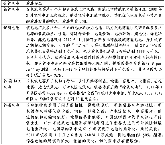 表1:其他含鋅電池發(fā)展動態(tài)