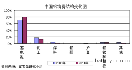 圖2:中國鉛消費結(jié)構(gòu)變化圖