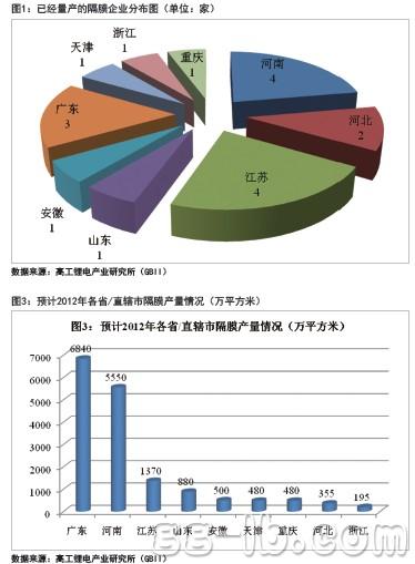 根據(jù)高工鋰電產(chǎn)業(yè)研究所(GBII)統(tǒng)計(jì),預(yù)計(jì)2012全年隔膜總產(chǎn)量將達(dá)到1.66億平方米,總產(chǎn)能將突破4.5億平方米。結(jié)合國(guó)內(nèi)已經(jīng)成功實(shí)現(xiàn)產(chǎn)業(yè)化的幾家隔膜廠商,目前我國(guó)隔膜企業(yè)實(shí)際產(chǎn)量和設(shè)計(jì)產(chǎn)能之間存在較大差異,主要原因一方面是目前國(guó)內(nèi)企業(yè)受限于生產(chǎn)工藝,面向市場(chǎng)的不同,平均收率水平約40%左右;另一方面,受今年上半年宏觀經(jīng)濟(jì)下滑影響,廠商目前無(wú)法滿負(fù)荷生產(chǎn),有些廠商甚至關(guān)閉部分生產(chǎn)線,因此壓低了廠商的產(chǎn)量并提高了生產(chǎn)成本。