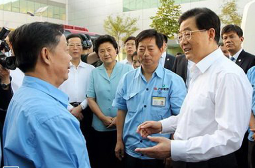 9月18日下午,中共中央總書記、國家主席、中央軍委主席胡錦濤在天津出席發(fā)展中國家科學(xué)院第十二次學(xué)術(shù)大會(huì)暨第二十三屆院士大會(huì)開幕式后,由中共中央政治局委員、國務(wù)委員劉延?xùn)|和中共中央政治局委員、天津市委書記張高麗等陪同,來到天津一些高新技術(shù)企業(yè),就實(shí)施創(chuàng)新驅(qū)動(dòng)發(fā)展戰(zhàn)略進(jìn)行調(diào)查研究,同干部群眾共商加快轉(zhuǎn)變經(jīng)濟(jì)發(fā)展方式、保持經(jīng)濟(jì)平穩(wěn)較快發(fā)展大計(jì),勉勵(lì)大家同心協(xié)力、奮發(fā)進(jìn)取,以優(yōu)異成績迎接黨的十八大勝利召開。