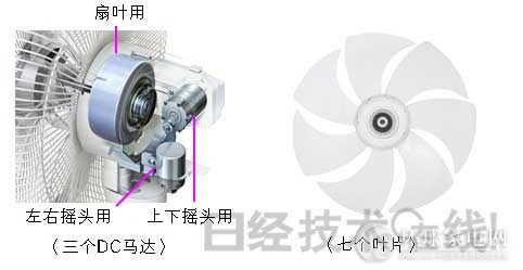 據(jù)稱(chēng),DC馬達(dá)由模具樹(shù)脂一體成形,葉片的中心部分加入了橡膠以吸收振動(dòng),因此可以減小工作噪聲