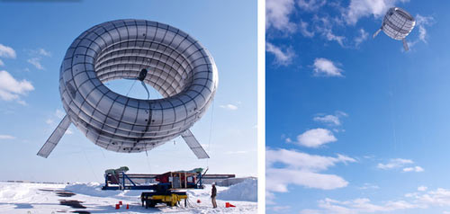 該空氣渦輪機(jī)的設(shè)計(jì)是傳統(tǒng)的風(fēng)車(chē)和飛艇的結(jié)合,通過(guò)充滿(mǎn)氦氣的外殼就可以浮動(dòng)在空中,因?yàn)楦呖罩械挠酗L(fēng)力大,空氣渦輪持續(xù)穩(wěn)定等優(yōu)點(diǎn)。之前,AWT在美國(guó)的緬因州做了一次實(shí)驗(yàn),它浮動(dòng)到了350英尺的高度,并成功發(fā)電,最后成功降落。Altaeros公司計(jì)劃進(jìn)行更多更深入的測(cè)試,他們計(jì)劃將AWT帶到1000英尺的高空,因?yàn)槟抢锏娘L(fēng)力超過(guò)地面的5倍之多,可以產(chǎn)生更多的能量。