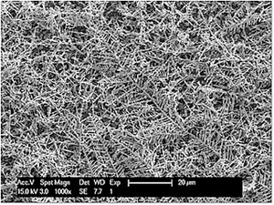 在一項(xiàng)太陽(yáng)能電池應(yīng)用中,該銀基分形樹被涂在吸光聚合物上。當(dāng)光子撞擊涂層的時(shí)候,會(huì)在聚合物中產(chǎn)生短期的電子和洞。帶正電荷的洞通過(guò)銀分支來(lái)收集,同時(shí)電子移動(dòng)至對(duì)電極形成電勢(shì)差。