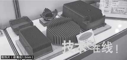 如果散熱片通過薄壁成型使散熱性得到提高的話,還可為輕量化做出貢獻(xiàn)。此外,由于形狀靈活性較高,因此還可對(duì)限定于有限空間內(nèi)的緊湊且復(fù)雜的形狀進(jìn)行成型。如果利用該精密鑄造技術(shù)對(duì)以往通過接合多個(gè)部件來制造的部件進(jìn)行一體成型的話,“還有望使成本得到降低”(該公司解說員)。