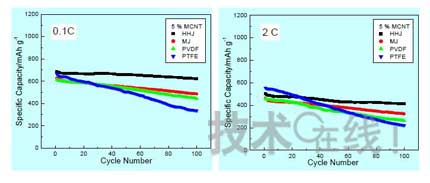 | 圖8 幾種電極粘合劑對電池性能的影響比較 |