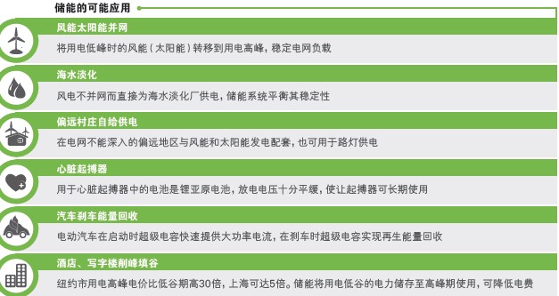 但上述兩個(gè)行業(yè)給儲(chǔ)能留下了伏筆。在沒(méi)有儲(chǔ)能的情況下,風(fēng)電場(chǎng)旁總是要修建一些火電廠,以備沒(méi)有風(fēng)時(shí)替代風(fēng)機(jī)發(fā)電——不然脆弱的電網(wǎng)將因電壓劇烈變化而崩潰。這聽(tīng)上去像個(gè)笑話,但卻是事實(shí)。而中國(guó)政府確定在未來(lái)10年將可再生能源占總體能源比例由不到5%提高至15%,大規(guī)模儲(chǔ)能(可以把它想象成巨型電池,把多余的電力存儲(chǔ)起來(lái),到無(wú)風(fēng)可用時(shí)再釋放出來(lái)),是解決這一問(wèn)題的不二之選。