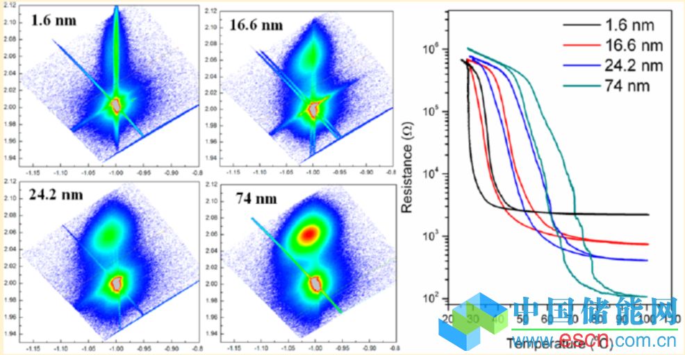 中國儲能網(wǎng)訊:近日,中國科學技術大學國家同步輻射實驗室鄒崇文副研究員和樊樂樂博士等利用同步輻射X射線衍射和倒空間成像技術,在研究二氧化釩超薄膜的外延生長和界面應力調(diào)控相變方面取得新進展,該研究成果發(fā)表于近期的Nano Letters上。
