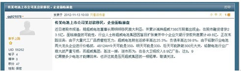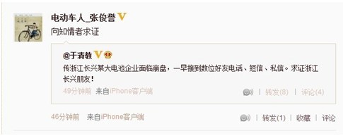 如果說網絡上捕風捉影的信息還可能是巧合造成的謠傳,同樣內容的群發(fā)短信就不得不讓人意識到事件的嚴重性了。從謠言信息的內容來看,如此了解鉛酸電池這一冷門行業(yè)情況的必然是業(yè)內人士,而將“董事長移民”“出股套現(xiàn)”等個人行為的最終結果定位為“壓死超威集團的一根稻草”,似乎矛頭指向也并非超威董事長本人、并非企業(yè)高層的內部爭斗,而更似競爭對手所為。然而以攻擊企業(yè)高層的方式詆毀競爭對手,此舉確實有些突破下限,有點下三濫。